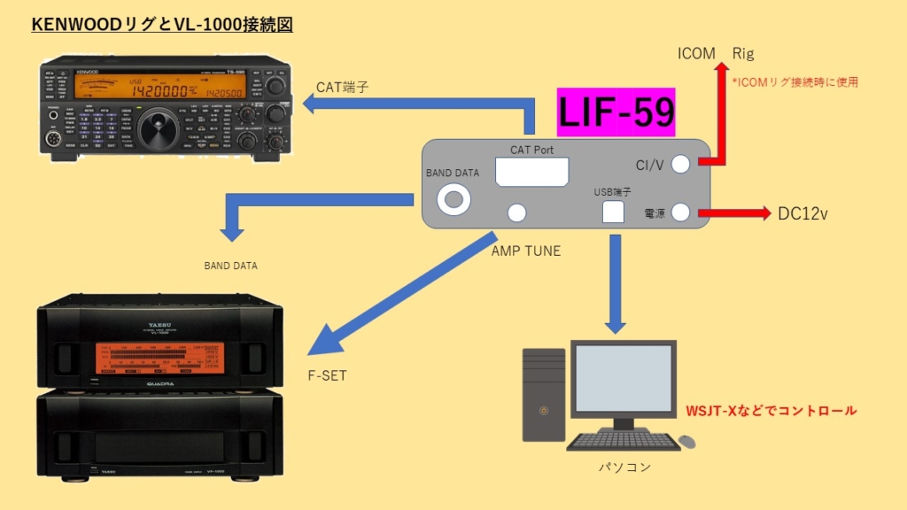 - 当初の設計が、KENWOOD製のリグと八重洲製のVL-1000の接続を想定していた。